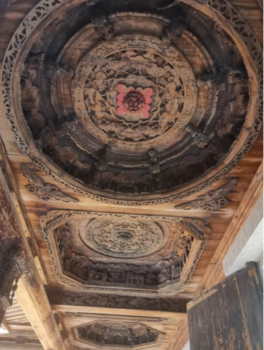 进入古民居,可见院落深深,一座连着一座,木雕、藻井、壁画、书法、浮雕、青石柱础雕刻精美,门窗木作精巧别致。