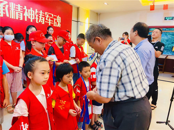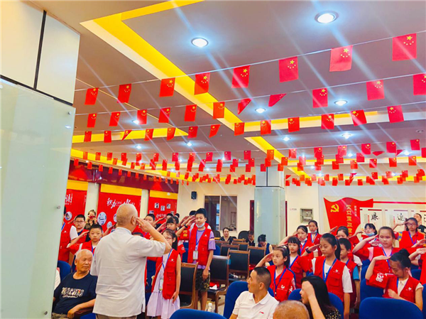 原四川省自贡军分区政委现新南社区国防家苑第一党支部书记胡兴忠学习了如何正确行军礼,小记者们向在场的退休军人集体行军礼,其标准的动作赢得了大家的一片掌声。