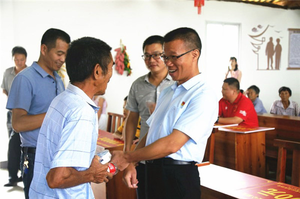 图:铭爱村党支部第一书记曾清燕(右1)亲切关怀老人