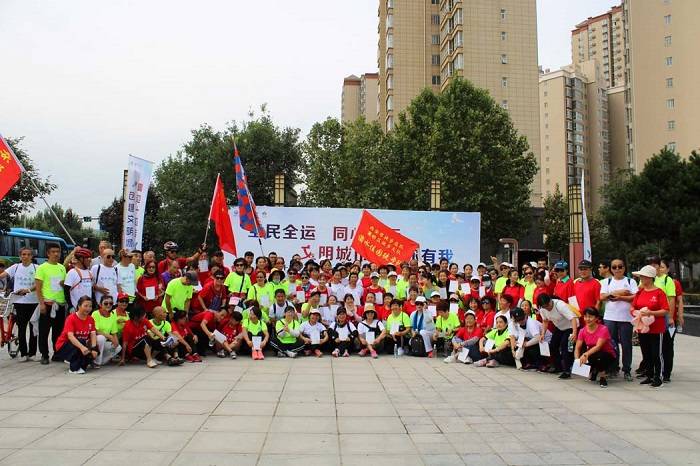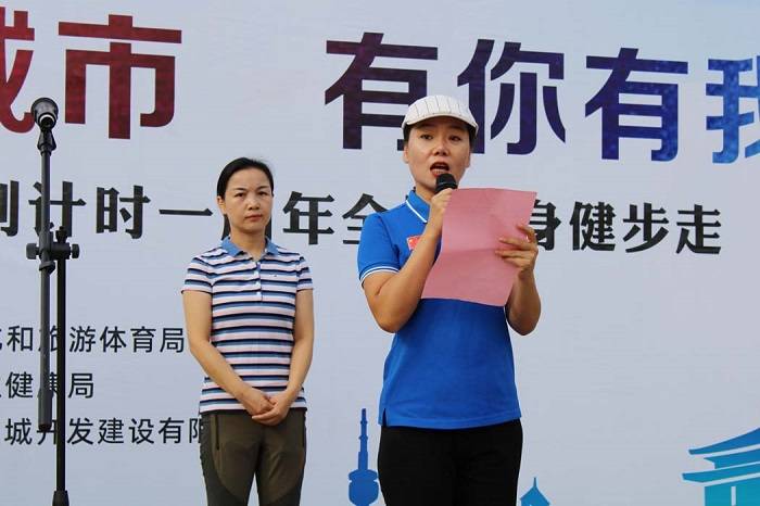 现场,全民健身代表杨华玲做《我为全运做贡献》倡议书,倡导广大市民群众和家庭积极参与体育健身活动,以主人翁的姿态大力弘扬时代新风,宣传全运文化,积极在全国文明城市创建和喜迎十四运工作中争当宣传者、参与者、奉献者、推动者。在西安灞桥湿地公园内,来自4个方阵的400余名体育健身爱好者激情出发。