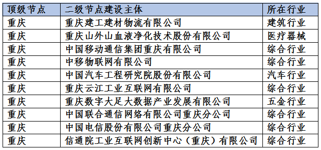本次上线的重庆市十大工业互联网标识解析二级节点名单