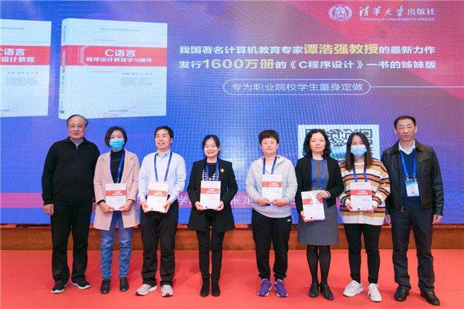 在本届大会上举行了两项赠书仪式。我国计算机基础教育开拓者之一、著名计算机教育专家谭浩强教授完成了适用于高职的《C语言程序设计教程》和学习辅导教材。高等教育出版社紧跟时代发展,推出高职《人工智能应用基础系列丛书》,与丛书年轻作者盛鸿宇团队共同向参会院校赠送了丛书中的《人工智能应用基础——Python程序设计》和《人工智能应用基础——TensorFlow》教材。