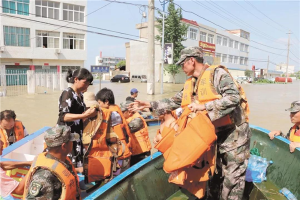 7月,武警黄冈支队官兵转移受灾群众