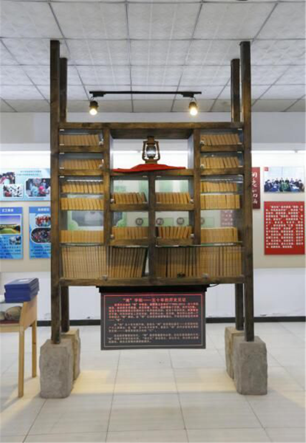 走进展览馆,最显眼处顶天立地的“闸”字柜里,装满了北苏闸村历年的账册、会议记录和文书档案。“闸”字柜下面的四方基石,象征着北苏闸的全体村民。
