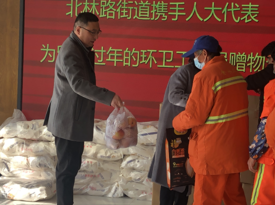 超暖!郑州市北林路街道人大代表为留郑过年的环卫工人捐赠物资
