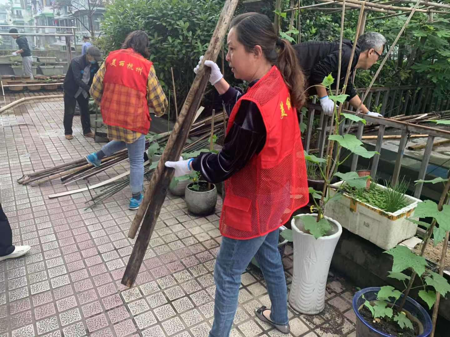 为进一步提升住宅小区楼道整洁度,还居民一个清洁通畅的楼顶环境。清波门社区结合楼道清理行动,针对花盆、泡沫箱器皿种菜、绿化带搭建菜架种菜等现象进行为期一周的整治行动,集中清理居民私自搭建的菜架,移除绿化带种植的蔬菜,清理破损空置的花盆、泡沫箱。