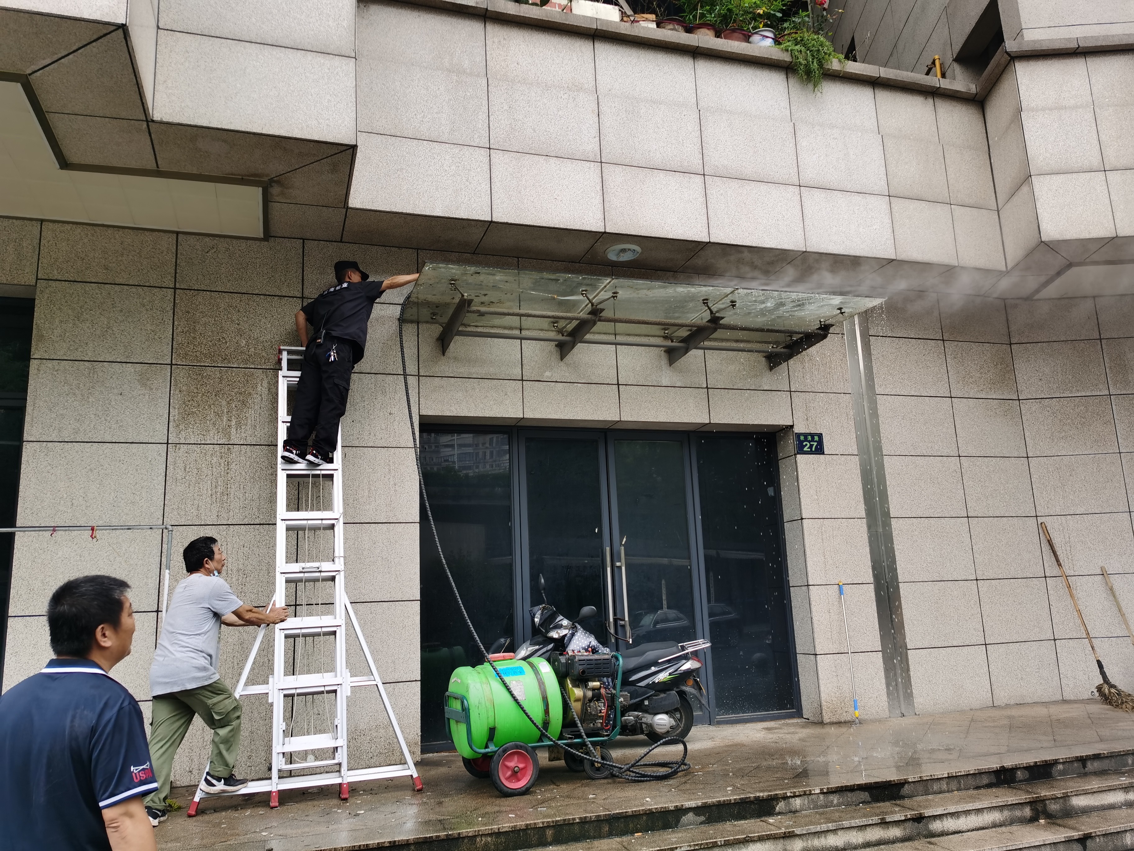 行动中,社工党员、环保志愿者们手持铁锹、扫帚齐动手,分工明确,有的做垃圾分类志愿者,有的在定时定点岗位上做劝导员,有的铲墙面牛皮癣,有的清扫绿化带垃圾、有的清理共享单车、有的清除杂草,大家不怕脏、不怕累;在面对外立面高空抛物时,志愿者们用梯子爬上一处处平台,对纸巾、泡面盒、残余食物等进行逐一清理,并进行分类。这些垃圾时间一长臭味四溢,清理完毕后,又用水加清洁剂冲洗,几处平台焕然一新,志愿者们衣服上也满是汗水和污水。一上午时间,共清理共享单车50余辆,非生活垃圾5车,清洗玻璃100余方,辖区内旧貌换新颜,整洁干净的环境获得了居民的一致好评。