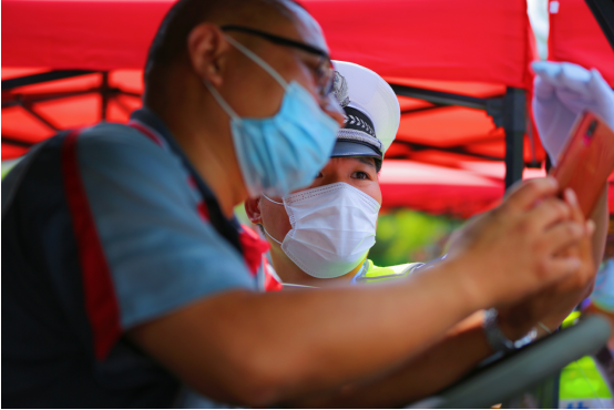 “查控点上,消耗的最多的是水,正常一个人一天要喝1.5升水,点上的同志要多喝一倍,上厕所也少,都流汗了,这警服就没干过”费志国笑着说道。据了解,这个检查点除了交警,还有来自预备役、街道、卫健委的同志,这几天顶着30多度的高温,大家心往一处想、劲往一处使,尽责查验站好这班岗。查验车辆2.3万余辆、人员5万余人、劝返车辆1200多辆,一串数字的背后是夜以继日的辛勤付出和汗水。“我们的身后是455万淮安百姓,这里是我们的家,决不让病毒跑到家里来。”这是大家共同的心声。(图文:宋超 蔡瑞永)