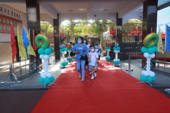 仪式最后,一年级新生与家长手牵着手一起迈过“梦想之门”,并将自己美好的心愿张贴“梦想墙”上。