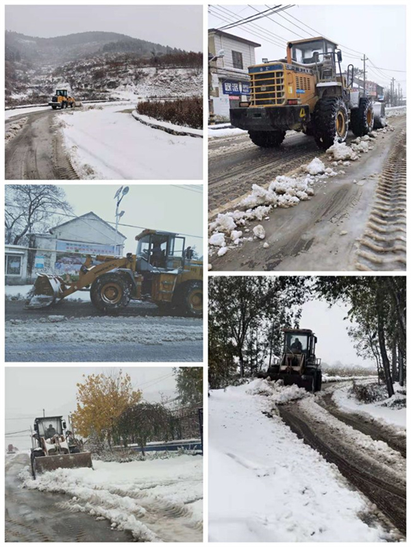 各村发动铲车铲除路面积雪,“红袖章”党员先锋志愿服务队员们也自发集结起来,纷纷拿出自家的铁锨,到大街小巷义务开展清雪除冰行动。