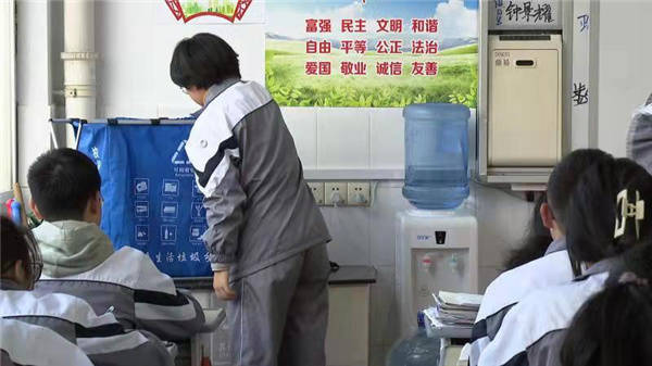 “有了这个‘桐拾袋’之后,我们都把平时的饮料瓶、废弃书籍、纸张等自觉地投放进里面,因为回收后的钱是打进我们班费里的,所以大家积极性都很高。”高一二班学生曹志轩说道。同时,据该班级班主任邓薇介绍,此前,教室内有可回收和其它垃圾两个垃圾桶,同学们扔垃圾的时候,经常会混淆,导致垃圾分类的效果不理想,但有了校园“桐拾袋”之后,同学们分类的积极性变得更高了,环保意识也有了明显提升。
