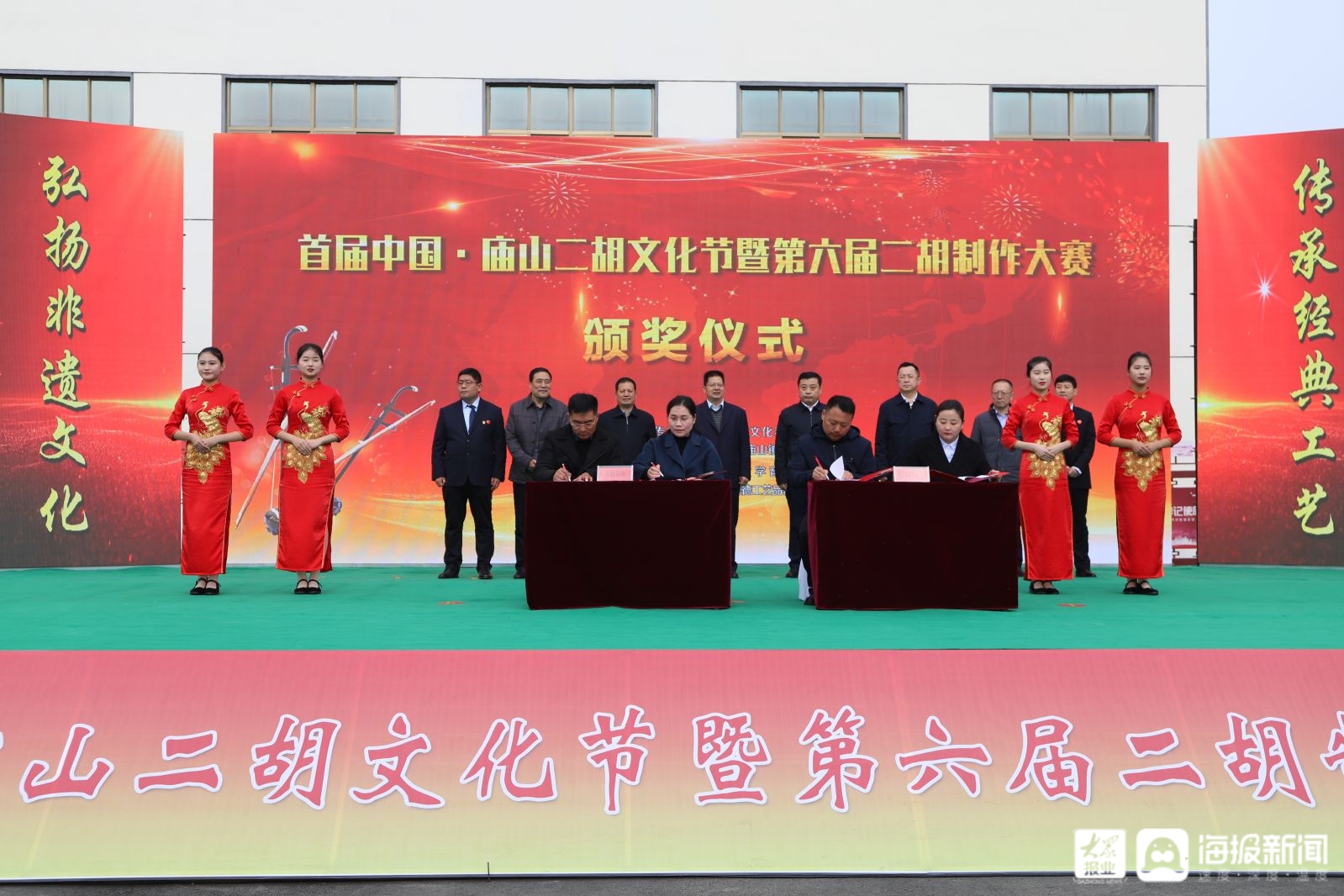 活动中,为12户第六届二胡制作工艺大赛获奖选手进行了颁奖,庙山镇分别与上海工艺美院等举行了七个项目签约仪式。(图文供稿:戴章超)