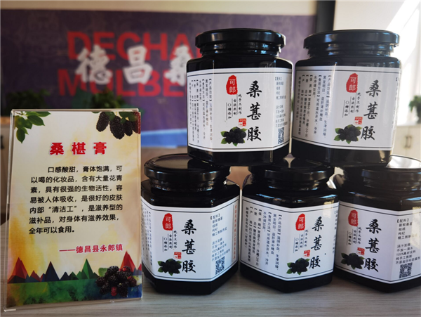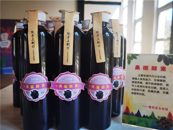 德昌永郎镇现有果桑种植面积有27000余亩。由于新鲜果桑存在不宜保存、运输的特点,当地经过技术引进还衍生出了桑椹酵素、桑椹膏、桑椹葡萄酒等桑椹深加工产品,进一步带动了当地农民增收致富。