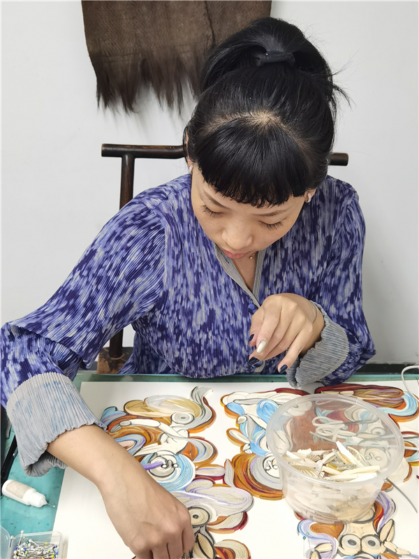 一张木桌、几卷纸丝、一把剪刀……一天下来,邢娜娜往往一坐就是十个小时,几款不同颜色的纸张在邢娜娜的指尖游走,不一会便成了不同的形状,这看上去虽然简单,做起来却并不容易。