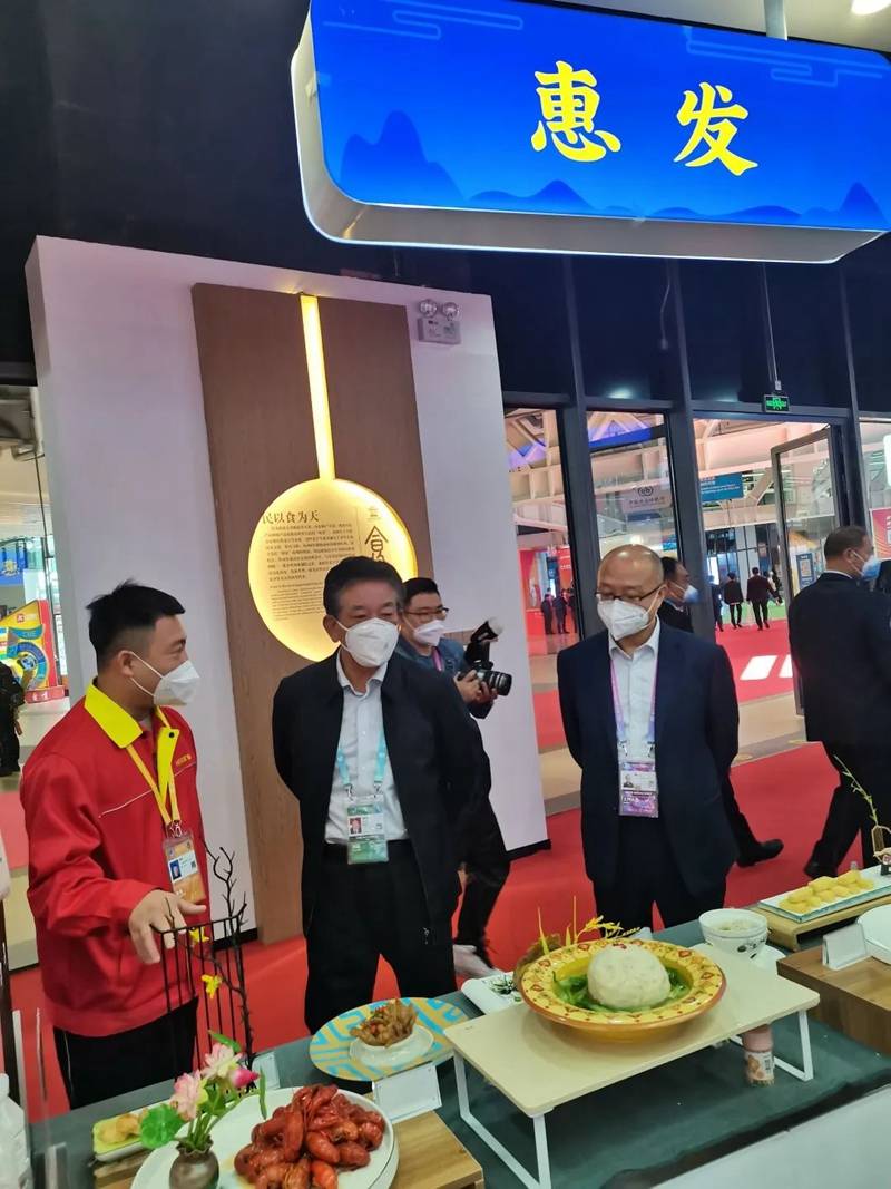 本次展会,惠发带来了“大国味道”预制菜系列菜品,受到了各省市领导、媒体、观众的关注和认可,山东省商务厅副厅长王洪平莅临展位,并对惠发企业预制菜的发展成效和前景潜力给予充分肯定,结合本土经济,充分发挥企业优势,推动预制菜产业做大、做强、做优,以预制菜产业促进乡村振兴高质量发展。