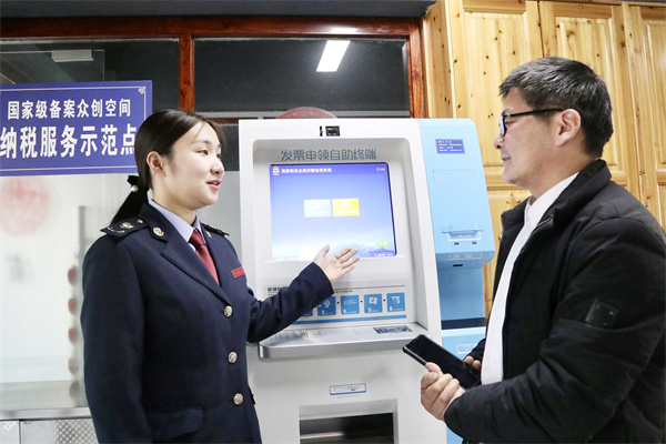 为做深做实税务系统“一改两为”,不断优化税收营商环境,方便纳税人就近领购发票,国家税务总局歙县税务局持续开展“便民办税春风行动”,聚焦纳税人缴费人急难愁盼问题,创新开辟“三分钟领票”服务新途径,让发票申领自助终端入驻工业园区,让园区内纳税人足不出园即可申领到税务发票。“目前园区内有近40家企业,是以技术创新企业为代表的产业集群。”黄山恩源创业园有限公司董事长、黄山市第8届人大代表姚威勇介绍,“此次发票申领自助终端成功入驻园区,让我们园区企业的办税成本明显降低、办税方式更加便捷、办税体验持续向好,满意度和获得感大大提高。”