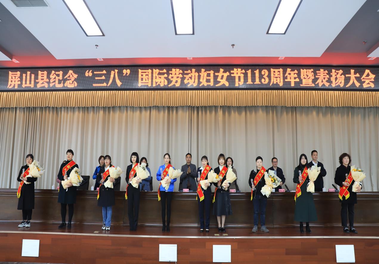 在第113个“三八”国际劳动妇女节到来之际,近日,宜宾市屏山县召开纪念“三八”国际劳动妇女节113周年暨表扬大会,评选出“三八红旗手”20名、“三八红旗集体”10个及“最美家庭”35个。