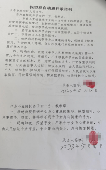 破解“探望困境”长春市双阳法院发出首份《探望权自动履行承诺书》