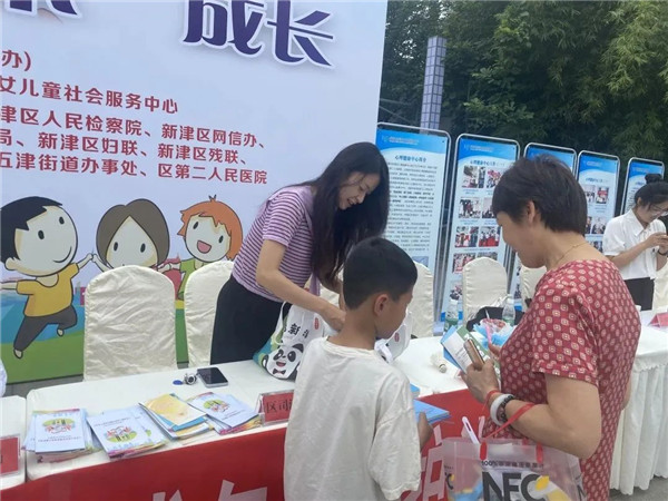 发布时间:2023-06-01 16:08:18 | 来源:中国网 | 作者:辛文 | 责任编辑:赵茜为深入贯彻落实党的二十大精神,开展《中华人民共和国未成年人保护法》等相关法律法规宣传教育,促进全社会关心关爱、支持参与未成年人保护工作,2023年6月1日上午,新津区未成年人保护工作宣传月活动在五津街道双拥文化广场启动。区民政局(区未保办)、区法院、区检察院、区网信办、区司法局、区妇联、区残联、区烟草专卖局、五津街道办事处、区第二人民医院等单位参加本次宣传活动。