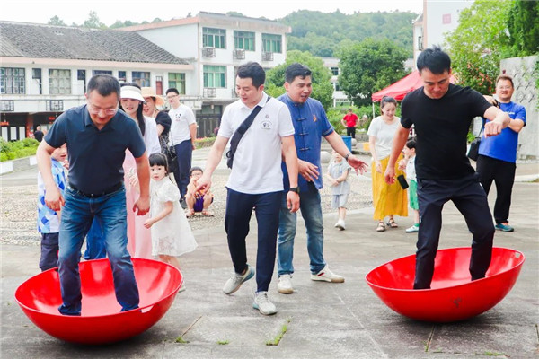 现场,不少家长带领孩子一起体验摇锅和竹竿舞等畲族传统体育项目和休闲娱乐活动,领略浓浓的畲族传统体育魅力。