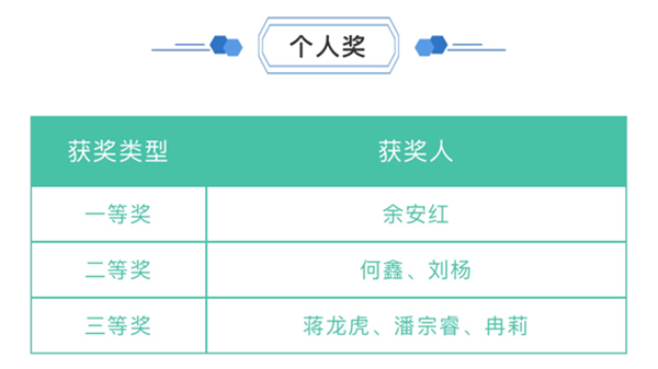 大赛共评选出团体一等奖1个、二等奖2个、三等奖3个,优秀组织奖3个;优秀个人一等奖1名、二等奖2名、三等奖3名,并对获奖团体和个人进行了表彰奖励。