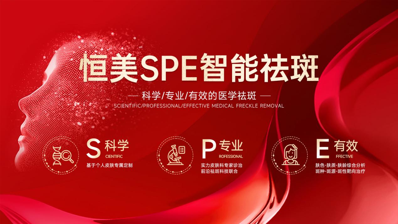 SPE智能祛斑中的S、P、E分别寓意科学(Scientific)、专业(Professional)、有效(Effective),是安徽恒美整形美容集团研创项目,它以专业、科学、有效的祛斑诊疗,充分发挥智能医疗的优势,运用前沿的祛斑科技、专业的皮肤专家,专人专项的服务,为医学美肤注入新动能。