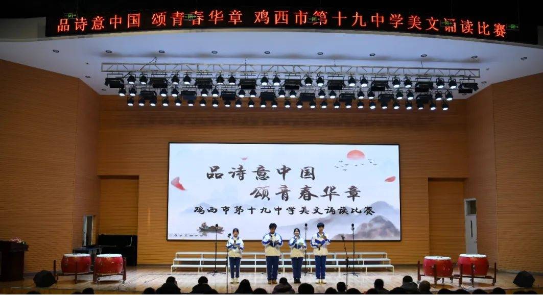 每天清晨第一遍铃声响起,校园处处回响着美文诵读的声音。伴随着那些热血、澎湃的文章,开始了一天的学习生活。为了考核学生们的朗诵水平和创意能力,鸡西市第十九中学2023年12月27日开展了经典诵读,创意大赛——品诗意中国,颂青春华章。