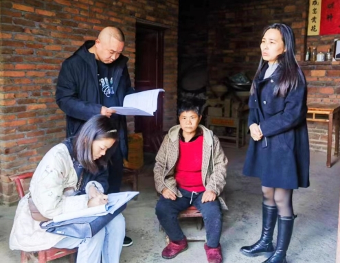 工作人员进村入户巡访困难群众。