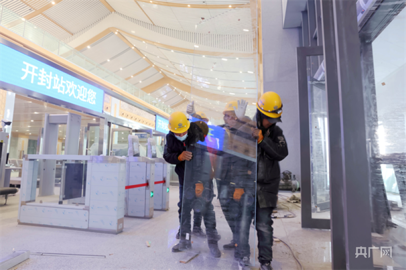 工人正在安装大门玻璃(央广网发潘庆杰摄)