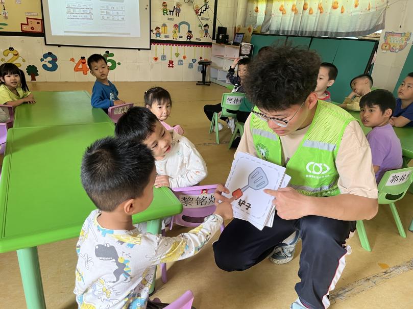 首先由志愿者讲解垃圾分类的相关知识,向孩童普及生活垃圾常识,让孩童初步了解可回收物、其他垃圾、厨余垃圾及有害垃圾,从小教会孩童正确科学地扔垃圾,实现垃圾减量化,从小做起。