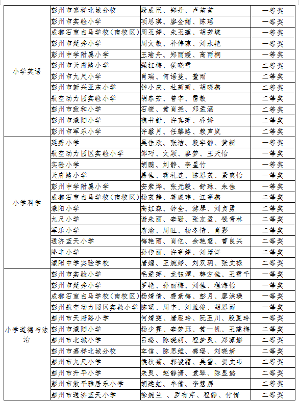 活动分设一等奖5名/学科,二等奖7名/学科;彭州市教育研究培训中心对获奖学校备课组颁发集体获奖证书,对交流发言的教师颁发个人获奖证书。