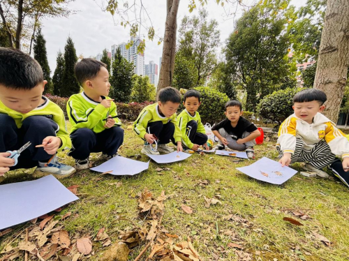 在温暖的秋风中,孩子们整齐列队,满怀期待地踏上了秋游的旅程。他们一路上欢声笑语,与秋天亲密接触,嬉戏奔跑在神奇的大自然中,追逐飘落的树叶,仿佛在和秋天一起玩耍。在快乐的游戏活动中,孩子们仔细观察各式各样的叶子和千奇百怪的生物,彼此分享探索大自然的秘密,感受大自然的千变万化。