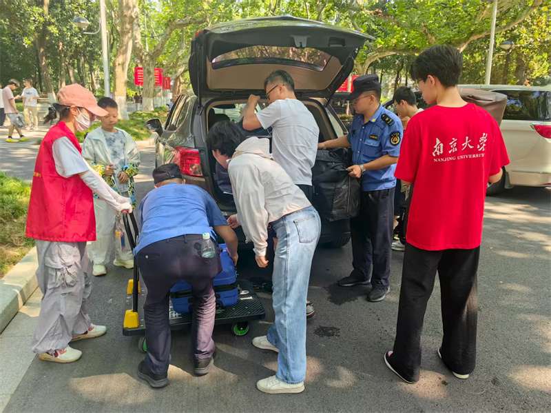 湖南路中队以南京大学新生入学为核心,重点巡查校园周边施工占道、噪音扰民问题,督促店家落实“门前三包”,优化交通路线:送学车辆从汉口路驶入、北京西路金银街路口驶出,小粉桥校门供步行入校,广州路校门“即停即走”。同时,中队在3个校门及关键路口安排“护学人”,既疏导交通、指引新生,又帮忙卸运行李,让新生感受暖心服务。