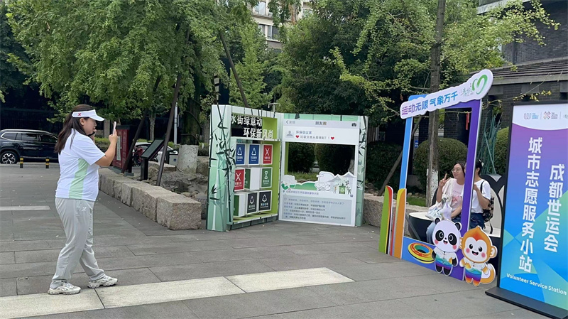 世运会举办时正值盛夏,上午10点,太阳就已把柏油路晒得发烫,连风吹过都带着热气,下过暴雨的地面更是像煮开的水般冒着“气儿”。总承包公司“星光益动”的15人专项小组,严格按照工作时间驻守铁像寺水街志愿服务小站,每天上午9点多,队员们就提前到岗:将提前备好的藿香正气液、救急包、饮用水整齐摆上便民桌,打开空调,最后扛着写有“志愿服务小站”的标牌放到门口显眼处,确保10点一到就能准时服务。