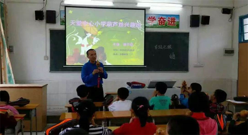 2015年,谭子强作为佛山市首批骨干教师,赴云浮市天堂镇中心小学进行支教。他将自己的“三行教育”理念和葫芦丝艺术,也带到了这所山区学校。