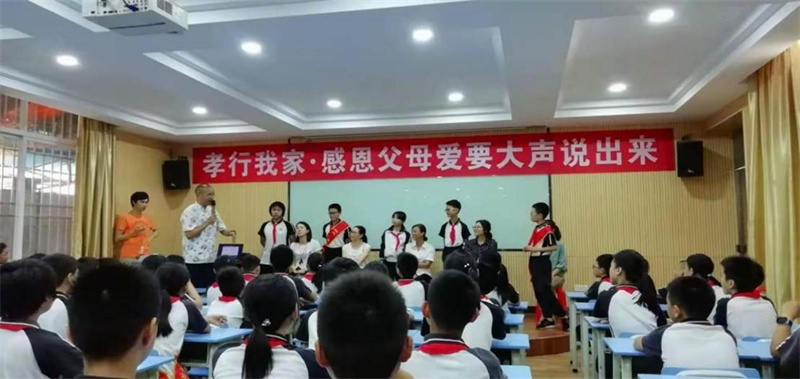 在“孝善”教育实践中,谭老师利用亲子活动课,组织学生分享“我为父母做了什么”,让孩子们在讲述与倾听中,感受到孝亲敬老的快乐与自豪。他将《弟子规》、《礼记》与《孝经》等经典融入课堂,引导学生结合生活实际去理解。“‘父母呼,应勿缓’,就是妈妈叫你的时候,要马上回答;‘出必告,反必面’,就是出门和回家都要跟家人说一声。”这样接地气的讲解,让古老的经典在孩子们心中活了起来。