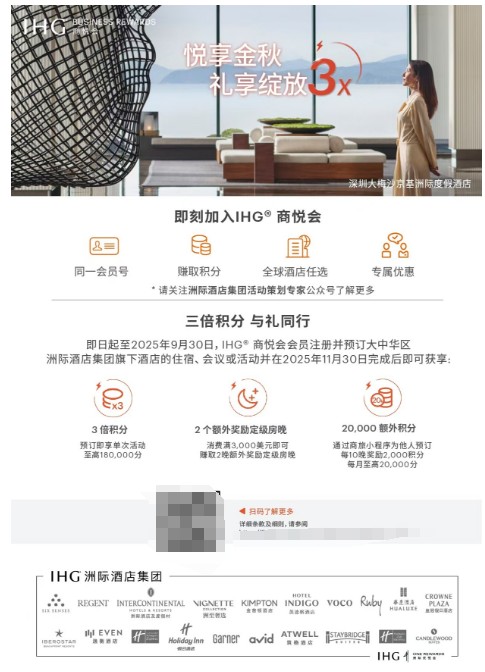 IHG®商悦会特别推出“三倍积分与礼同行”活动