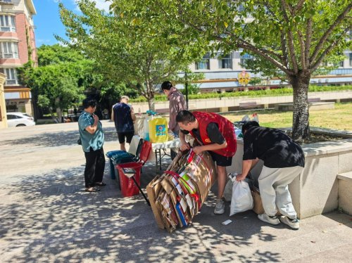 活动前期,西湖区蒋村街道城市管理办通过小区业主群发布活动信息,提前向居民告知活动时间、地点及兑换规则,充分调动居民参与热情。活动当天,工作人员在府苑新村中心广场设置了专门的可回收物兑换区与宣传咨询区,纸巾、肥皂、洗洁精、洗衣粉等实用生活用品整齐摆放供大家兑换,吸引了众多居民驻足参与。