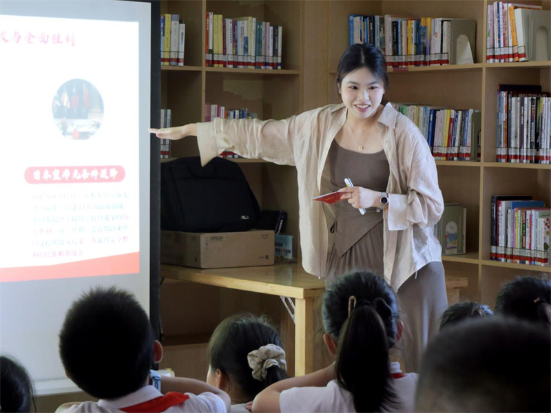 发布时间:2025-09-19 17:38:26 | 来源:中国网 | 作者: | 责任编辑:吴一凡革命老区浙江省平阳县创新教育形式,将“开学第一课”搬进特色文化空间“悦读驿站”,为孩子们带来一场沉浸式的红色历史体验。9月17日,平阳县山门镇粟裕红军小学20余名三年级学生在这座充满书香气息的驿站里,搭乘“‘九三’时光机”,重回烽火连天的抗战岁月。