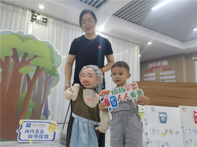 随后登场的“聪明的丁婆婆”折偶剧,更是将活动推向高潮。色彩鲜艳的手偶、生动有趣的剧情,瞬间吸引了孩子们的注意力。剧情推进中,工作人员巧妙设置“垃圾分类任务关卡”——向每组家庭发放印有不同垃圾图案的小卡片,邀请大家化身“环保小助手”,帮丁婆婆把“混放的垃圾”精准分类。孩子们纷纷拉着家长讨论,“这个塑料瓶是可回收物!”“电池要放进有害垃圾里!”在一次次分拣、核对中,大家齐心协力完成任务,解锁后续剧情,现场欢笑声与讨论声此起彼伏。