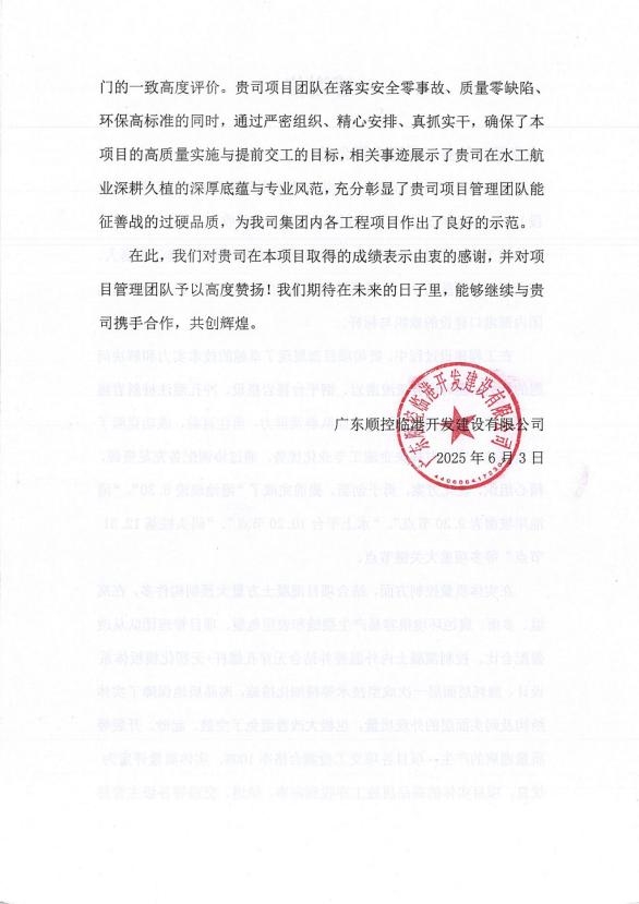 发布时间:2025-09-22 10:02:55 | 来源:中国网 | 作者: | 责任编辑:吴一凡近日,中交三航局佛山港了哥山港区本港作业区码头二期工程项目(二阶段)顺利完成交工验收,收到广东顺控临港开发建设有限公司发来感谢信。针对项目桩基数量多,地质情况及作业环境复杂等重难点问题,项目建设团队坚持技术创效理念,在水域疏浚与码头桩基工程、软土地基处理、绿色低碳实践等多方面大胆尝试,通过多项技术创新,高效推进项目建设。