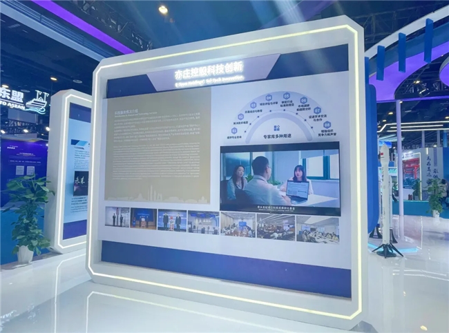 在亦庄控股展区的科技创新板块,屏幕上实时跳动着亦庄控股累计拥有近2000项知识产权、孵化转化的近百个重点项目,以及链接的60余家高校院所资源网络。现场工作人员手持平板电脑,正向一名客商演示。企业如何借助亦庄的18个孵化器和5个公共技术服务平台,实现从研发到产业化的全链条跃升。