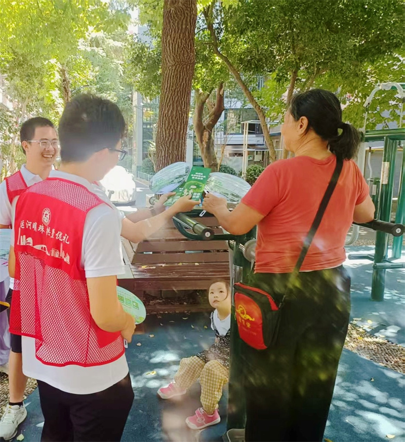 活动前期,王马社区特别邀请浙江大学医学院的青年志愿者们,深入社区公园、党群服务中心等居民常去场所,手持精心设计的垃圾分类宣传册,面对面为居民讲解分类标准、投放技巧,耐心解答日常分类中的困惑,将实用的分类知识精准传递到每一户家庭,为后续宣传筑牢基础。