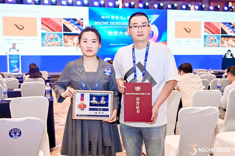 此次获奖的背后,是科室持续精进的不懈努力。据神经外科主任胡海成介绍,科室始终重视能力提升,通过组织医护人员外出学习进修、积极参与同行交流,不断拓宽视野、更新技术。近年来,科室在业务、科研、教学领域全面突破,不仅每年主办神经外科脑血管病介入治疗方向等省、市级继续教育培训班,近3年还获批市级及校级科研课题10余项,在核心期刊发表论文20余篇。“这次大赛给了县域医院展示的机会,获奖是对我们的肯定,更是继续进步的动力。”胡海成说道。