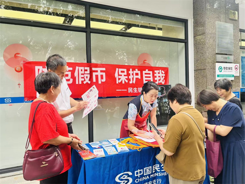 为进一步扩大宣传覆盖面,民生银行淳安支行还在银行门口设立户外宣传摊位,悬挂横幅、发放手册,面对面为市民讲解假币常见种类、识别技巧及误收假币后的正确处理方式。活动现场气氛热烈,不少市民驻足咨询,主动领取宣传资料,与工作人员互动交流,取得了良好的社会反响。
