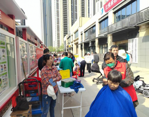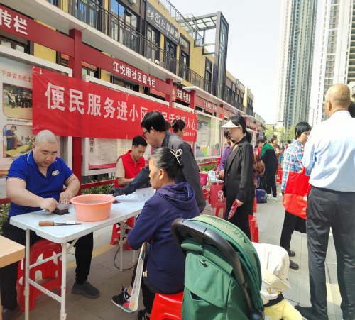 同时,便民服务区也热闹非凡。磨刀师傅熟练地为居民处理刀具,让日常烹饪更加便捷;理发师技艺娴熟,细心为每一位老人修剪发型,让他们精神焕发;修鞋、修伞、缝补等服务也一一到位,解决了老人们生活中的小难题,延长了物品的使用寿命,传递了节约与实用的生活理念。