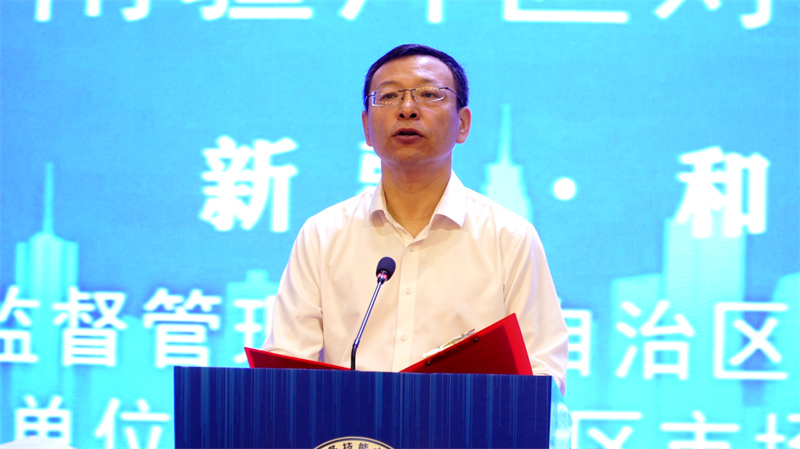 自治区市场监督管理局党组成员、副局长陈立波致辞。(乃比江·买买提摄)