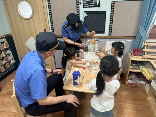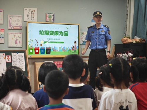 活动当天,幼儿园的教室里充满了欢声笑语。北山中队队员精心准备了各种教具和宣传材料,通过生动有趣的互动游戏和趣味动画,向小朋友们讲解了垃圾分类的重要性。他们详细介绍了可回收物、有害垃圾、易腐垃圾和其他垃圾的分类方法,并通过实例让孩子们理解每一种垃圾的归类。“我要回家告诉爸爸妈妈,电池不能随便乱扔!”许多孩子表示,要把今天学到的知识带回家,当家里的“垃圾分类小督导员”。