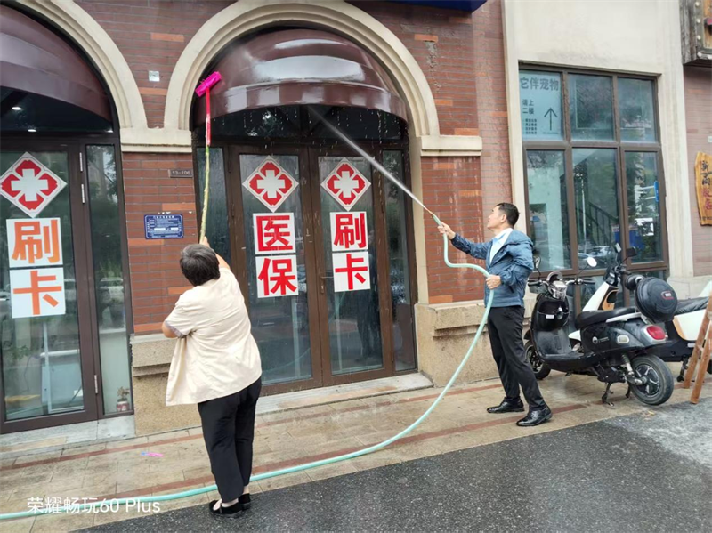 党支部以党建为纽带,打破部门壁垒,组建由党员志愿者(红)、物业(白)、城管(蓝)构成的“三色联动巡查队”,构建“支部统筹、多方补位”治理共同体。巡查队聚焦“门前三包”落实,每日开展“地毯式”巡查,核查商户卫生、物品摆放等情况;针对主干道污渍、餐饮油污等痛点,定期开展“清污靓街”行动,累计清理油污、陈年污渍 20余处,实现街区“颜值”“气质”双提升。