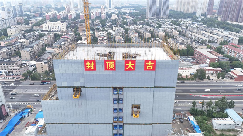 商办楼的封顶标志着天津郁江道 DEF地块项目所有楼栋全部实现结构封顶,项目正式全面进入冲刺阶段,全力向着年底竣工备案的目标发起攻坚。自项目开工建设以来,始终以高标准、严要求推进各项工作,先后迎接国资委多次专项检查,在建设进程中,还与天津市多场国际重要会议活动的举办同步推进,以稳健的建设节奏展现了国企担当。